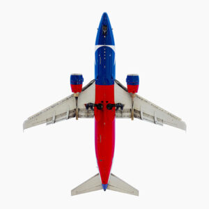 Southwest Airlines “Texas One” Boeing 737-300, archival inkjet print, 40×40”, ed. #3 of 7, white wooden frame with plexi. $5,000.