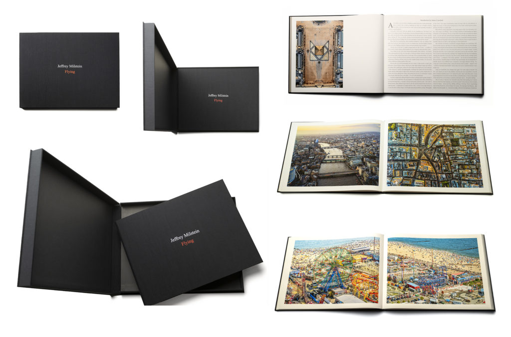 Jumbo archival handmade book, printed by the author, hand-bound using traditional techniques in London. The book features some of the best of Jeffrey Milstein’s award-winning, iconic aerial photography over the last ten years. The book includes 60 aerial images of Los Angeles, New York, Paris, London, Amsterdam, and Italy. Introduction by James Crawford. 17 inches tall by 22 inches wide. Limited edition of 25. Each purchase comes with complimentary white gloves, and is signed and numbered by the author. Finished with Japanese linen and presented in a clamshell case. Printed on Canson Infinity Rag Photographique 210gsm archival grade paper. Starting at $12,000. Click here to inquire about availability.